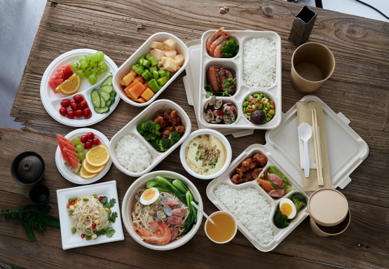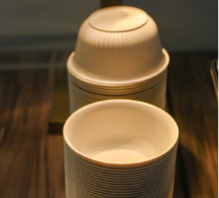 Dans le restaurant du Hangzhou International Expo Center, la table à manger et l'aménagement paysager sont fabriqués à partir de matériaux à base de papier, qui peuvent être recyclés après le match. La vaisselle fournie aux clients est entièrement composée de matériaux biodégradables et respectueux de l'environnement. Les assiettes et bols sont en balle de riz, et la vaisselle en matières premières végétales, de l'aménagement de l'espace à la vaisselle, créant un espace repas « sans déchet ».